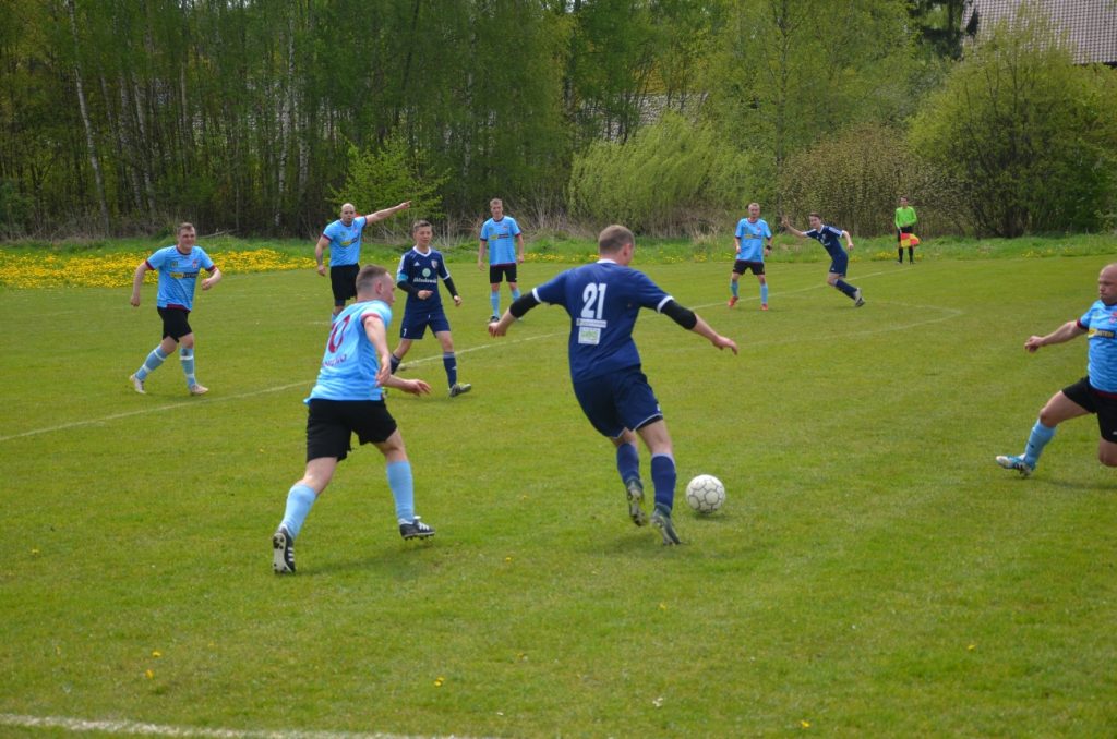 Na dobrym, choć wąskim, boisku w Pniewie oglądaliśmy typowy mecz klasy B: dużo kopania, niecelnych podań, walki i ambicji, przy czym niektórym zawodnikom mecz zupełnie nie wyszedł, a inni grali bardzo dobrze (w obu drużynach). Naszym zdaniem najlepszym piłkarzem meczu był rosły łysy stoper KS Pniewo, który był pewny, zawsze dobrze ustawiony, dyrygował obroną gospodarzy i wyglądał na wyjadacza z dużo wyższej ligi. Dopiero rzut okiem na protokół pomeczowy „ujawnił nam”, że to Marcin Cienkowski, czyli gość, który ponad dekadę temu był mocnym punktem Nadnarwianki Pułtusk w IV lidze, a zwano go „Bruce Lee”. 🙂