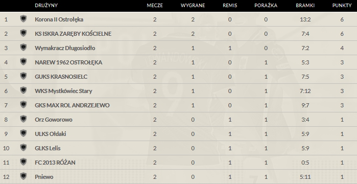 | 4 | Rzekunianka Rzekuń | 27 |