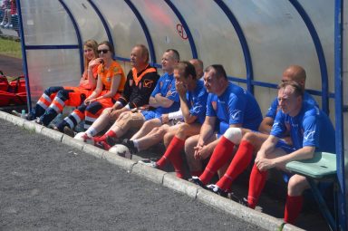 Przybyło osiemdziesięciu Narwian, część z nich ze względów zdrowotnych (albo z powodu pełnionych funkcji organizacyjnych) nie pojawiła się na murawie, ale było na co i na kogo grę popatrzeć. Goście pozostali na słonecznym stadionie aż do końca meczu Narew – WKS Mystkówiec, a potem nastał czas wspomnień.