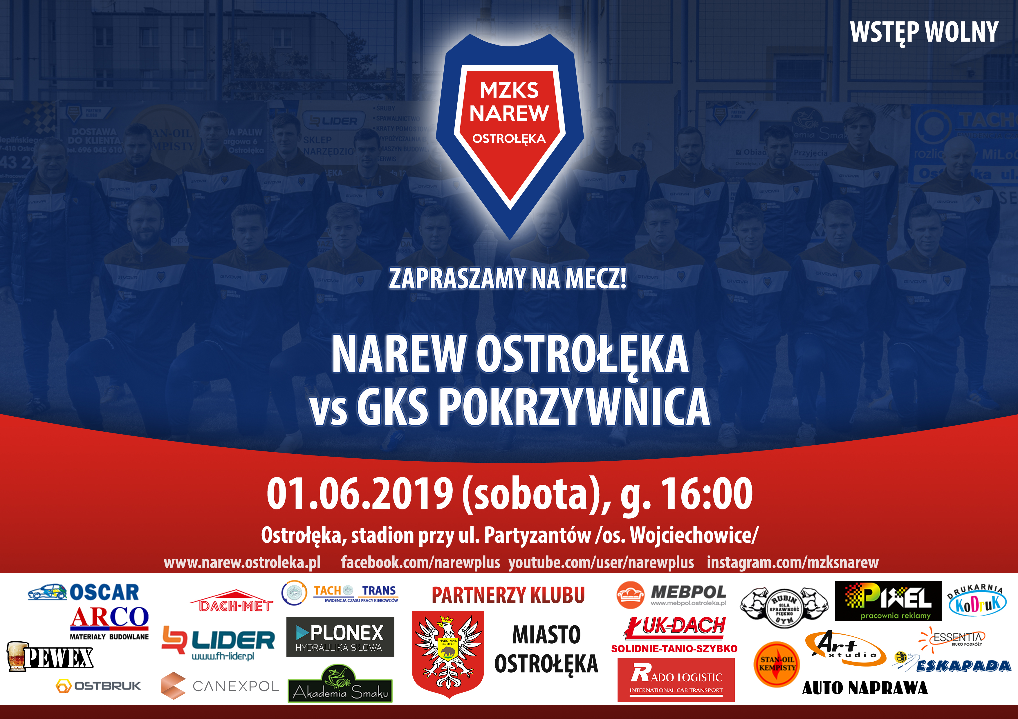 Zapraszamy w Dzień Dziecka o godzinie 16:00 na stadion przy ul. Partyzantów 3 na osiedlu Wojciechowice, gdzie Narew podejmie GKS Pokrzywnica w meczu pomiędzy pierwszą i trzecią drużyną ligi.