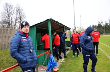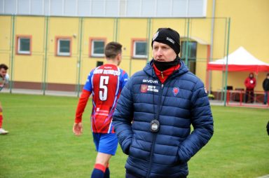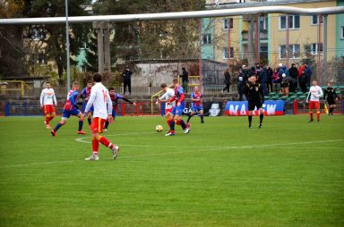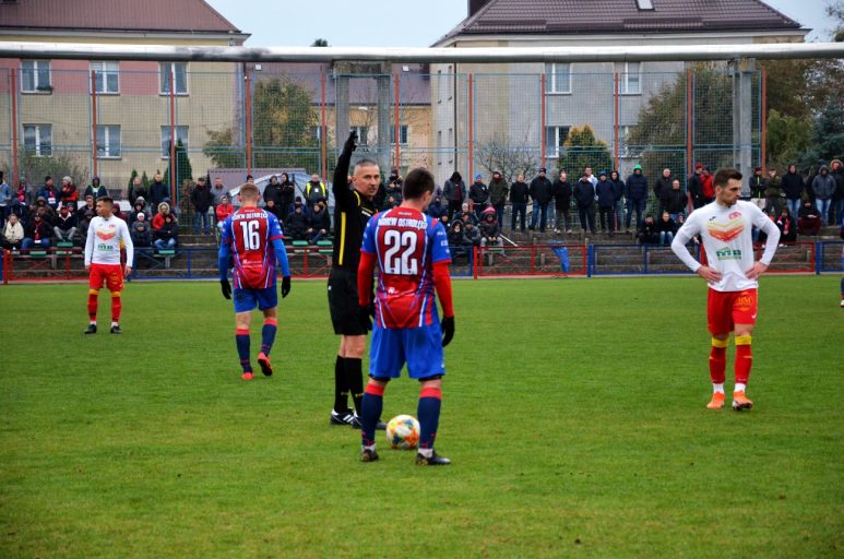 Ponownie wyszliśmy na prowadzenie w 32. minucie. Lewą stroną pobiegł Skorupka, podał piłkę Przemysławowi Olesińskiemu, a ten bardzo dokładnie wystawił piłkę do środka Mariuszowi Marczakowi, odwdzięczając mu się za asystę sprzed kwadransa. I tym razem przyjezdnym udało się wyrównać. Kolejny faul, mniej więcej w tym samym miejscu, co poprzednio, wrzutka w pole karne i niestety kiks naszego bramkarza dopomógł Kucińskiemu w zdobyciu bramki. Na drugą połowę trener zdecydował się na zmianę golkipera, aby goście nie „dobili” podłamanego Kacpra.