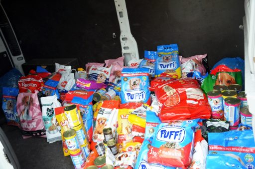 Po wszystkim możemy powiedzieć, że akcja się udała – jako narwiańska społeczność zapewniliście z nami naprawdę dużą liczbę szczególnie opakowań pokarmu. Do tego trafiło się kilka innych „gadżetów”, w postaci smyczy, koców i legowisk. Przeważała jednak karma, której udało się zebrać dziesiątki kilogramów. Miło, że do akcji włączyli się także goście, którzy przekazali kilka dużych toreb karmy 🙂