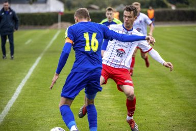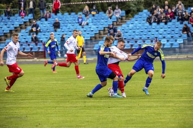 Goście pokazali w Ostrołęce bardzo ładną piłkę, starając się grać kombinacyjne akcje i utrzymywać się w posiadaniu piłki. Tego dnia nie mogli jednak sforsować zasieków naszej defensywy, która zagrała „na zero”. Duet młodzieżowców – Kacper Niedźwiecki i Maciej Kubeł, pokazał się z bardzo dobrej, pewnej strony, a pomagali w tym równie skuteczni Paweł Dzbeński i Bartłomiej Ziemak.