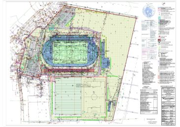 - Budowa trybuny wschodniej z zapleczem sportowym i zagospodarowaniem terenu wraz z infrastrukturą techniczną,