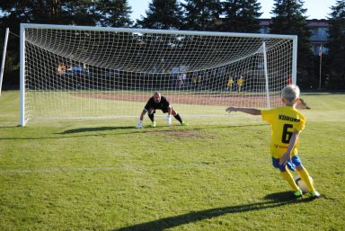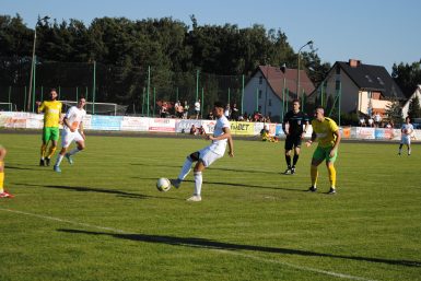 Narew atakowała częściej, chociaż brakowało wykończenia. Wreszcie jednak się udało. W 75. minucie Bartosz Ziemak zagrał z rzutu rożnego, a świetnie złożył się do strzału Artur Bajor i zdobył gola z woleja. „Jeeest!” – przeszło po całych, licznie zajmowanych trybunach.