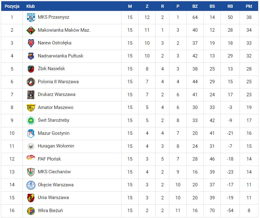 | 4 | Rzekunianka Rzekuń | 27 |