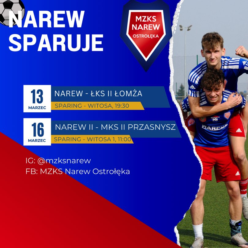 Z kolei w niedzielę 16 marca kolejny sparing zagra Narew II, która podejmie rezerwy MKS-u Przasnysz. Spotkanie na sztucznej murawie stadionu przy ul. Witosa, o 11:00.