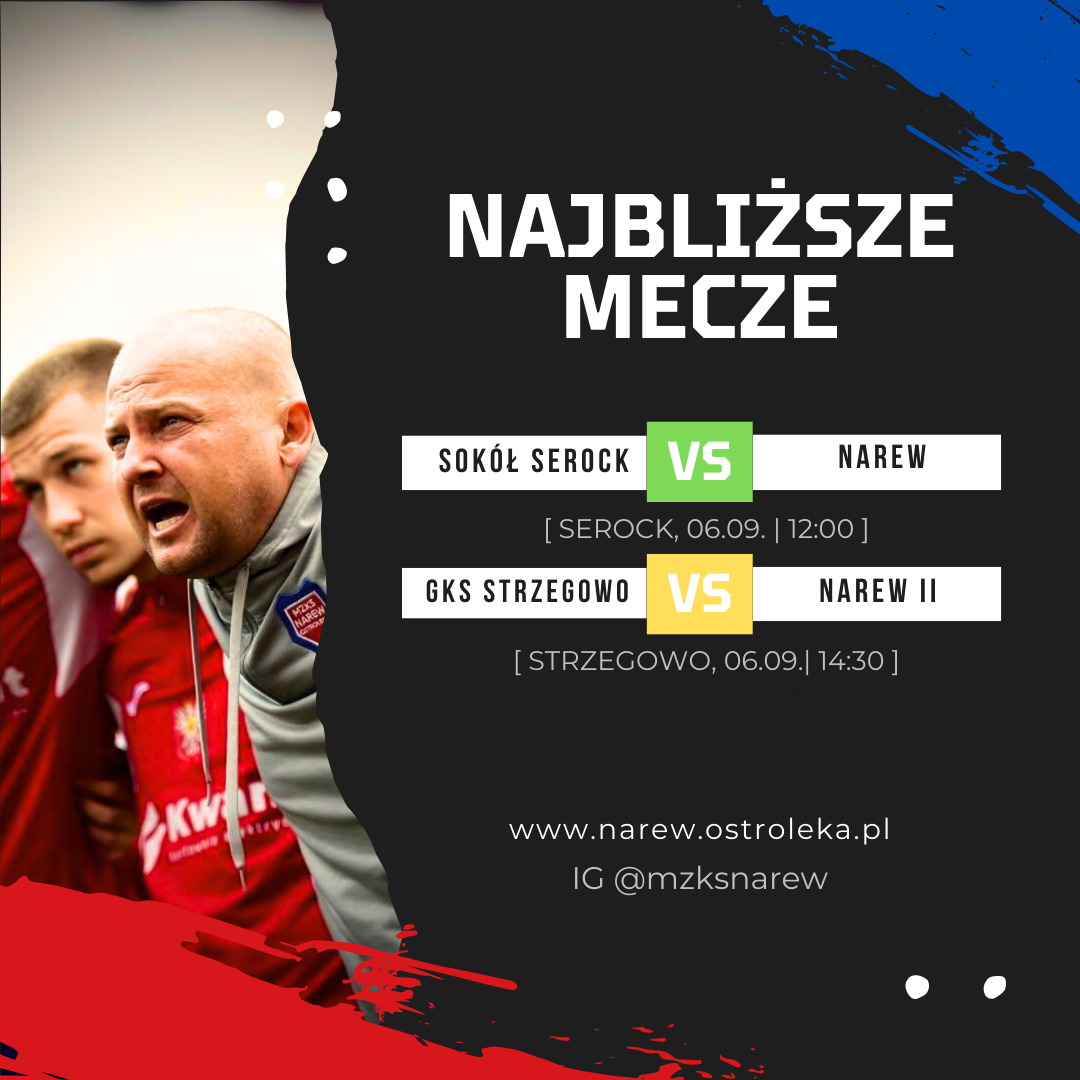 W najbliższy weekend obie drużyny seniorskie Narwi zagrają na wyjazdach – jedynka w Serocku, a dwójka w Strzegowie.