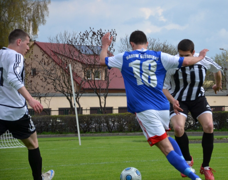 Mecz na szczycie IV ligi pomiędzy dwoma drużynami aspirującymi do miana wicelidera rozczarował. Ani niebiesko-czerwoni, ani ich rywale z Przasnysza nie rozegrali wielkiego spotkania w piękne sobotnie popołudnie. W ostatecznym rozrachunku minimalnie lepsi okazali się przasnyszanie, którzy po golu Pawła Olszewskiego wygrali 1-0.
