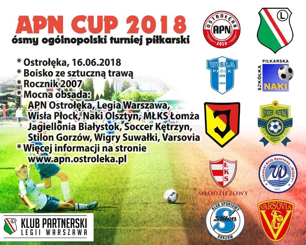 W sobotę od godziny 9:00 na boisku ze sztuczną trawą przy ul. Witosa rozpocznie się ósma edycja ogólnopolskiego turnieju 11-latków APN CUP, organizowana przez Ostrołęcką Akademię Piłki Nożnej. Ciekawa jest obsada turnieju, w którym wezmą udział dwie