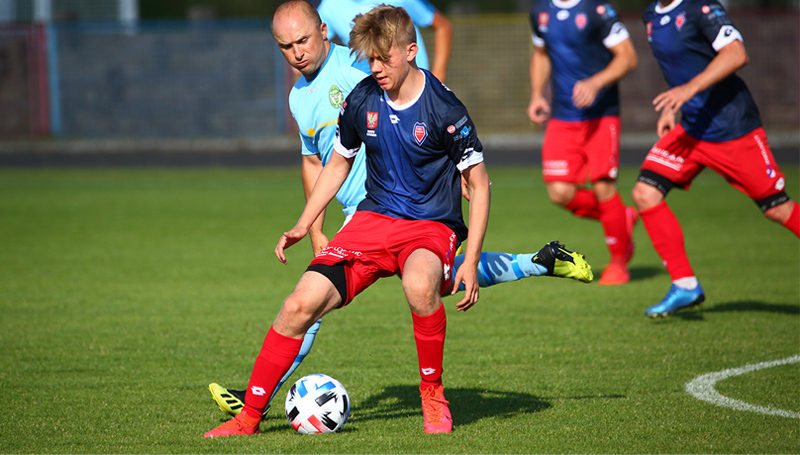 Niebiesko-Czerwoni udanie zainaugurowali nowy sezon rozgrywkowy, wygrywając z GKS-em Pokrzywnica 6-0. Po pierwszej połowie, do której można było mieć zastrzeżenia, w drugiej zawodnicy realizowali plan debiutującego w Narwi trenera Andrzeja Sieradzkiego i spokojnie wypunktowali Pokrzywnicę. Świetny mecz zanotował Kevin Karwowski (na zdjęciu głównym), który zdobył swojego pierwszego hattricka w karierze seniorskiej. Siedemnastolatek maczał także palce (u stóp) przy innych trafieniach Narwi.