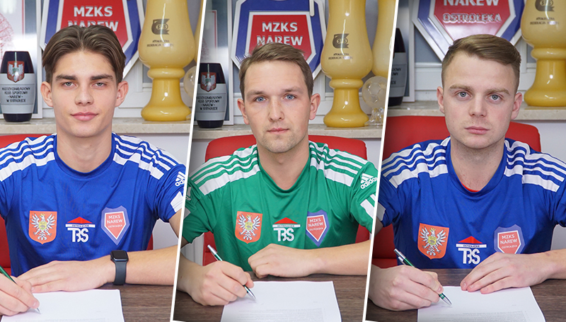 Trenowali z nami od początku okresu przygotowawczego, a teraz możemy ogłosić, że w barwach Narwi będą występować w rundzie wiosennej. Z Niebiesko-czerwonymi związali się Kamil Dobrowolski, Paweł Modzelewski i Łukasz Świderski (w tej kolejności znajdują się na zdjęciu powyżej).